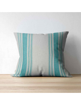 Tela Ratlles Ona TurquesaTela a ratlles model Ona en color turquesa sobre fons cru.
